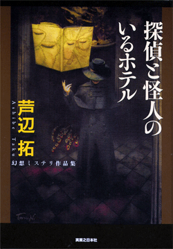 9月2日付中日新聞の「【伊賀】 現実は3億円予算規模 名張市旧市街地の「再生プラン」」にもとづいて名張まちなか再生プランとかいうインチキプランのインチキ関係者を徹底的に罵倒してやるのは都合によりあしたのことにいたしまして、本日は新刊のご案内です。 芦辺拓さんの短篇集『探偵と怪人のいるホテル』が出ました。まずは書影をどうぞ。画像をクリックしていただくと版元である実業之日本社の新刊紹介ページが開け胡麻。 表紙の装画は野川徹さん、装幀は盛川和洋さん。ダークな色調がいかにも渋くて好ましいのですが、装幀家の盛川さんは以前、などと個人情報的なことを記してもいいのか、まあいいか、以前は光文社にお勤めで、『江戸川乱歩著書目録』をつくるときえらくお世話になりました。光文社には本社ビル内に資料室があるのですが(ミステリー文学資料館のことではありません)、それとは別に本社の近くに資料庫みたいな施設があり、そこに潜りこんで調べものをさせてもらったときずっとつきあってくださったのが盛川さんで、そういえば近所の蕎麦屋でお昼もご馳走になりましたっけ。退職して装幀の仕事をはじめられたと風のうわさで聞き及び、ご自宅の住所は存じあげませんでしたから『江戸川乱歩著書目録』をお送りするときにはたしか芦辺さんからところ番地を教えていただいたのだと記憶いたします。装幀のお仕事も順調なようでまずはご同慶のいたり。さるにても、遥けくも来つるものかな。 さてその芦辺さんの新刊の件ですが、版元のオフィシャルサイトでも仔細には紹介されていないようですから収録作品のタイトルをお知らせしておきましょう。発表年月もあわせて記しておきます。